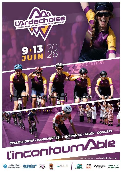 L'Ardéchoise est l’évènement vélo incontournable. Mondialement connu, ce festival du vélo propose une multitude de formules de quoi satisfaire le plus grand nombre: Parcours de 1 à 4 jours sur route, cyclosportifs, cyclotouristes, VAE, parcours gravel et même championnat d'Europe pour les plus compétiteurs.